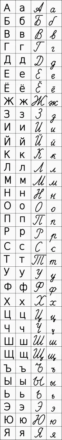 One important note: the cursive Russian alphabet looks very different from the printed alphabet. The printed alphabet is rarely used when writing by hand. (The same goes with other Cyrillic-written languages.) On the upside, though, as a traveler, you are quite unlikely to have to read much handwritten Russian!