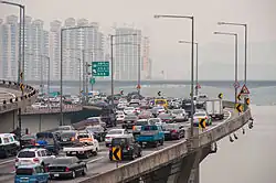 No matter where in Korea you start your journey, there will be tolled expressways (Gosok Doro) and national highways (Gook Do) that lead to Seoul; the most important one is the Gyeongbu Expressway, linking Seoul with Busan. To avoid the daily traffic jam on the Gyeongbu Highway near Seoul, take Jungbu/2nd Jungbu, Seohaean, or Yongin-Seoul Expressway. On Korean highways, the first lane is used as a passing lane. for overtaking. No matter how fast you're going, it's not okay to keep driving in the lane.