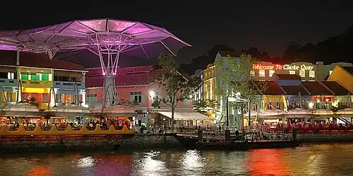 | Riverside (Civic District) Singapore's colonial core, with museums, statues and theatres, not to mention restaurants, bars and clubs, centred along the banks of the Singapore River at Boat Quay and Clarke Quay. |