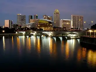 | Marina Bay Dominated by the Marina Bay Sands integrated resort (hotel, casino, shopping mall, convention centre and museum), the futuristic Gardens by the Bay, and the Marina Barrage. Along with the Singapore Flyer and the Esplanade Theatres, Marina Bay makes up the new iconic skyline of Singapore. |