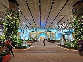 - 🌍 Jewel Changi Airport (directly connected to Terminal 1; walk across the link bridge from 2 and 3; from Terminal 4, take the bus to Terminal 2). 24 hours. Most shops & attractions: Daily 10AM-10PM. A shopping mall with many restaurants and shops, many of which have their only outlet in Singapore here. Even the locals do come often to bask in the semi-indoor cool tropical greeneries after a hearty meal & a day of shopping. Head to the Canopy Park at Level 5 for assorted mazes and walks between hedges, or the Shiseido Forest Valley to shelter under the trees. The iconic Rain Vortex is the world's highest fountain, whose water showers down rather than shoots up, and at night it becomes the stage for a light and sound show. There is no entry fee, but there are fees for additional attractions. If you don't want to move landside, you can see the fountain by taking the skytrain between Terminal 3 Concourse B and Terminal 2 Concourse E.
