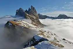 South Tyrol is the northernmost region of Italy. Bcause of its history and location in the middle of the Alps, it's still considered a Central European region although Italy is in Mediterranean (or Southern) Europe. It's also true that all regions in North-Eastern Italy consider themselves as Central European. Indeed, they have more geographic similarities with Slovenia, which is considered fully Central European and on the southern part of the Alps, than with the rest of Italy). The region is composed of high mountains and their valleys. The best known part of South Tyrolean Alps are the Dolomites including Schlern (2,662 m) and Rosengarten (3,002 m). The Dolomites are in eastern South Tyrol while the highest mountains are in western South Tyrol with the Ortler Alps (highest peak - 3.902 m). The Dolomites offer some of the most dramatic mountain scenery on the planet with their striking appearance, which has evolved over millions of years as erosion and weathering shaped what were originally under-sea coral reefs. They take their name from Deodat de Dolomieu, the French geologist who first described them. The most important river is the Adige/Etsch which flows into the Adriatic Sea while the Eisack and Rienz are the two most important of the Adige's/Etsch's tributaries in South Tyrol. The Adige trench runs north - south, dividing the western (known as the Brenta) and eastern Dolomites. The only river which doesn't flow into the Adriatic Sea is the Drava which passes through most of the Central European countries and enters the Black Sea.