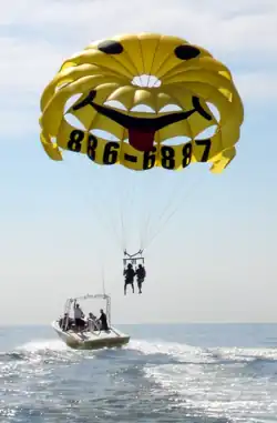 Water sport is, in its broadest sense, all kinds of recreation in, or on, a body of water, typically at a beach.