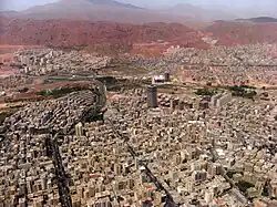 At an altitude of 1,340 meters above sea level, 619 km northwest of Tehran, it was the second largest city in Iran until the late 1960s. It is a former capital of Persia, and had a population of 1,400,000 according to 1992 census. Tabriz is in a valley to the north of the long ridge of Mount Sahand. The valley opens out into a plain that slopes down gently to the northern end of Lake Orumieh, 60 km to the west. The 160-km long Aji, Chai or Talkheh River is the major river of the city, formed by merging of three smaller rivers, namely the Ab Nahand, Quri Chai, and Ojan Chai, all of which originate from the Sabalan Mountain and the heights in the southeastern part of the town. The river and streams join the Orumieh Lake after passing through the valleys between the Sorkhband and Yekkeh Chin mountain north of Tabriz and Osku district. Mehran River or Maidan Chai, also called Liqvan River, originates from the peaks between Karim and Sultan mountains overlooking the Liqvan village (a major center of cheese production in Iran) near Esparakhoun and Qeshlaq. Its worst natural disadvantage, however, is its vulnerability to earthquakes, one of which utterly destroyed the city in 858. Rebuilt in a minor key, it was again devastated in 1041, when more than 40,000 people lost their lives.