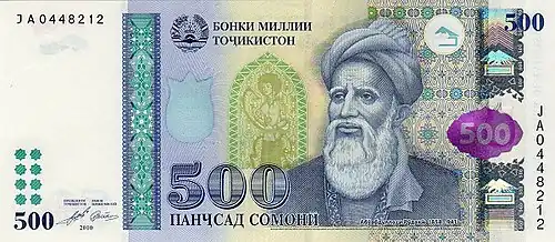 The somoni (Tajik: сомонӣ; ISO code: TJS) is the national currency of Tajikistan. It is subdivided into 100 diram (Tajik: дирам). Wikivoyage uses С placed before the amount in all our articles. However, when you're shopping locally, you may see a variety of notations placed before or after the amount (most commonly just the letter С).