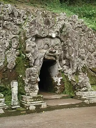 - 🌍 Goa Gajah (Elephant Cave), Jalan Goa Gajah (about an hour walk from Ubud palace with partly unfriendly-pedestrian roads). Daily 08:00-17:00. The centerpiece here is a cave dating back to the 9th century, the entrance to which is an ornately carved demon's mouth. Inside are some fragmentary lingam and yoni statues, as well as a statue of Ganesha. Large, carved guards stand around pools near the entrance, and a little path leads to a waterfall, rice fields, and some Buddhist stupa fragments. Some parts of the Goa Gajah complex were not excavated until the 1950s. Nominated as a UNESCO World Heritage Site. 30-60 min visit without guide. Unclear if dirt path to rice fields and elephant river is usable/maintained. Adults Rp 50.000, Kids Rp 25.000 including sarong.