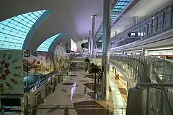 Passport control in Abu Dhabi International Airport - Abu Dhabi International Airport (AUH IATA) – This airport has the next best international connections after Dubai. Abu Dhabi's flag carrier Etihad Airways now offers direct flights from Chicago (ORD), New York, Toronto and many other airports in Europe and Asia. Other major airlines serving Abu Dhabi include WizzAir from many cities in Eastern Europe, British Airways from London-Heathrow, KLM from Amsterdam Schiphol and Lufthansa from Frankfurt.