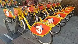 - Donkey Republic, ☏ +45 8988 7227, info@donkeyrepublic.com. Donkey Republic is a bike sharing company with bikes in a number of towns, mostly in Europe. You can rent a bike for 15 minutes, an hour or longer. The bikes can be returned to an approved drop-off location, either a station or an approved area (depending on city), otherwise a surcharge applies. A subscription ("membership") covers short rides in all towns with such bikes, while prices for non-members or longer rides vary by country. The scheme works with an app, which requires Android or iOS, Bluetooth, GPS or Galileo and internet access. You may also need to scan QR codes (not any more?). Registration is obligatory. Up to five bikes can be rented by one person (such as for travel companions, all at least 12 years old). Price varies between locations and depending on membership and rental time, told by the app at time of renting.
