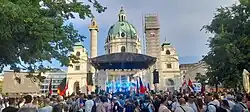 There have been some reports of fraud around Karlsplatz and the Ring. The usual scenario is that someone will stop you and ask for directions. A couple of other guys show up claiming to be police, showing a badge (must be fake). They ask if you were getting drugs from the other guy and then will ask for your passport and wallet for verification. When you are busy trying to convince them that your passport is valid, one of them sneaks out some money from your wallet. Best to tell them that you want to go to the police station — there is one at Karlsplatz U-Bahnstation. It's a minor annoyance, but it's better to be careful. In a different case of fraud they try to convince you that your money is counterfeit money and that they have to inspect it. As always use common sense: police are taught to approach you in a very distinctive way (you will notice if they do so), the badge must have Polizei ([ˌpɔlɪˈʦaɪ̯] police) and the Austrian coat of arms and/or the Austrian flag located somewhere on it, and they will be willing to bring you to the police station or a properly uniformed officer.