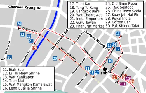 The Yaowarat and Phahurat Tour is a one day and night guided walking tour through Yaowarat and Phahurat, the home of Bangkok's Chinese and Indian communities.
