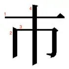 巿 (Kangxi radical 50, 巾+1, 4 strokes, cangjie input 十月 (JB), four-corner 50227, composition ⿻一巾)