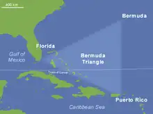 - An area in the Atlantic Ocean where many ships and planes have disappeared under allegedly mysterious circumstances.