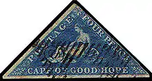 - (informal) One of several denominations of triangular postage stamps issued by the Cape of Good Hope during the period 1853-1864.