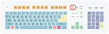 A 104-key PC US English keyboard layout with "Prt Sc" circled.