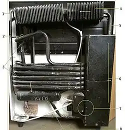 - (physics) an absorption refrigerator (a refrigerator that uses a heat source to provide the energy needed to drive the cooling process) (Can we add an example for this sense?)