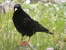 - A species of bird in the crow family (Corvidae) (Pyrrhocorax graculus), that breeds locally in the highest mountains of southern Europe, the Alps, across central Asia and India.