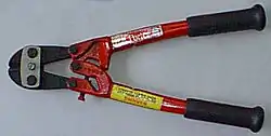 - A metal tool, resembling a large pair of pliers, used to cut or sheer bolts.