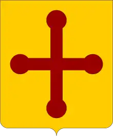 - A shield of arms : bendy of six, over all a cross bourdonnée fitchée.