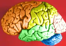 1. (anatomy) brain, cerebrum (organ located in the anterior and superior part of the brain)