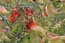 - A legume native to Southern Africa that grows red flowers and bloated pods, often used in folk medicine; Lessertia frutescens (formerly Sutherlandia frutescens).