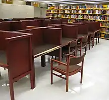 - Hence, a partially partitioned space for studying or reading, often in a library.