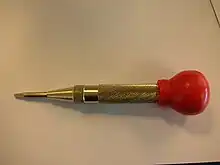 centerpunch (third-person singular simple present centerpunches, present participle centerpunching, simple past and past participle centerpunched)