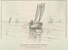 A picture of an "old style Chebacco boat drailing for mackerel" (from 1887)