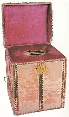 - (now historical) A chamber pot enclosed in a stool or box; a commode.