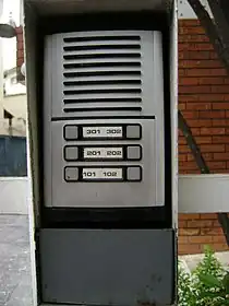 - An intercom system which enables someone, without opening the door, to converse with the person who has rung the doorbell.