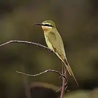 This blue-cheeked bee-eater (Merops persicus chrysocerus), seen in Senegal, has prominent eyestripes