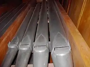Four flue pipes of a diapason rank.