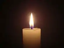 - candle (an ignitable solid light source made of wax, stearin or other combustible material)