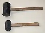 - (tools) rubber mallet (mallet with a rubber head, used to deliver a softer blow to the target than a metal hammer would produce)