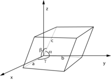 A parallelepiped unit cell requires six lattice constant to specify three side lengths (a, b, c) and three angles (α, β, γ).