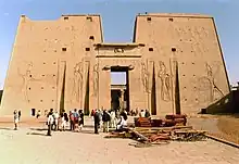 Borrowed from Ancient Greek πυλών, πυλῶνος (pulṓn, pulônos).