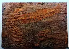 Fossil Rangea longa, a rangeomorph