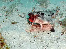 - A variety of batfish, Ogcocephalus darwini, native to the Galapagos Islands and Peru, which is noted for its bright red lips and inability to swim.