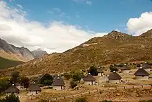 - (South Africa) A traditional circular design of house, typically with a conical roof, commonly thatched. Still used in rural regions, but also popular as a theme in the ambience of resorts, either as chalets or as cheap utility buildings.