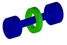 1. (physical chemistry) A complex of two molecules, one ring-shaped and the other dumbbell-shaped, with the dumbbell threaded through the ring and having end groups too large to pass through the ring.