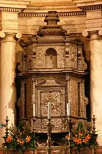 - tabernacle (small ornamented cupboard or box used for the sacrament of the Eucharist)