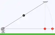 A diagram of a radar station and an aircraft, showing the slant range between the two (the distance along the line denoted by the black circled 1).