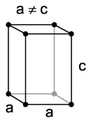 - (crystallography) Having two equal axes and one unequal, and all angles 90°.