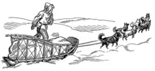 - (Canada, US) A similar sled of wood, pulled by dogs, possibly with steel runners, made to transport cargo.