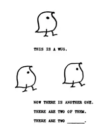 - (linguistics) An imaginary creature resembling a bird, used in the Wug Test to investigate the acquisition of the plural form in English-speaking children.